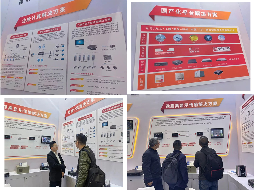 作為參展商之一,特控如約而至,攜國產化龍芯/兆芯/飛騰/海光平臺行業計算機、模塊化工業電腦、邊緣計算控制器等多款產品以及遠距離顯示傳輸解決方案、AI視覺缺陷檢測解決方案、智能倉儲物流解決方案、三維五軸點膠控制解決方案亮相,吸引來自智能制造、智慧交通、工業電子、智能倉儲、新能源、AOI檢測、AI運算等應用領域的專業觀眾前來參觀。