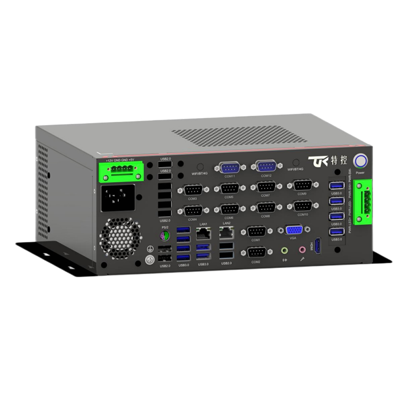 接口豐富 : 2*LAN, 10*COM, 20*USB, 1*PS/2, 1*遠 程 開 關(guān) , 1*4PIN鳳 凰 端 子 供 電 , 1*VGA, 1*HDMI, 1*4PIN 遠程開關(guān)1*SIM槽 , 1*LINE OUT, 1*MIC, 2*2.5寸 硬 盤 位 , 1*M.2( 2230, PCIE+USB2信 號 , 支 持 1*4PIN 鳳凰端子供電(+12V/+5V)WiFi/BT/4G),1*PCIE X16